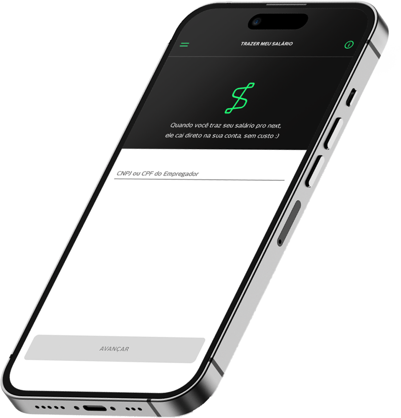 Dá para fazer mais com o seu salário Trazendo seu salário para o next você poderá aproveitar ainda mais ofertas e benefícios através do nosso app. Seu salário acontece com uma conta digital completa aqui no next.